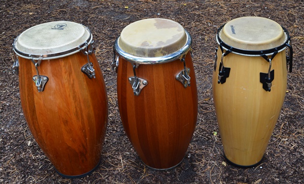 Aber wie die Trommeln einordnen, katalogisieren, zueinander setzen? Nach Herkunftsland, Herkunftsvolksstamm, Form, Spielart, Name? Das alles sind nur Krücken, aber etwas anderes haben wir nicht. Daher werde ich tatsächlich den ungefähren Herkunftsort (in eher größeren Regionen) als Oberkategorie wählen, und dann in den Beschreibungen versuchen, auf genauere Herkunft, Name, Trommelform, Spielart, Bedeutung einzugehen. Manches wird aus der Literatur sein, manches aus eigenem, angesammelten Wissen. Viele Trommeln werden im Set gespielt, ich bezeichne das als „Familie“. Nicht im Sinne der sehr speziellen Familienidee der Ewe – Trommeln (mit Vater, Mutter, Bruder, Baby etc.) sondern im Sinne von prinzipieller Zusammengehörigkeit, wie z.B. bei der Conga (Quinto, Conga, Tumba).