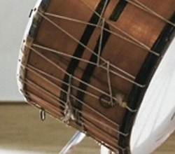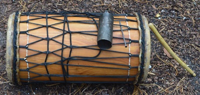 Wird mit einer Glocke gespielt, die man am Trommelkörper (genauer, an der Verschnürung) befestigt und die mit einem Metallnagel angeschlagen wird.